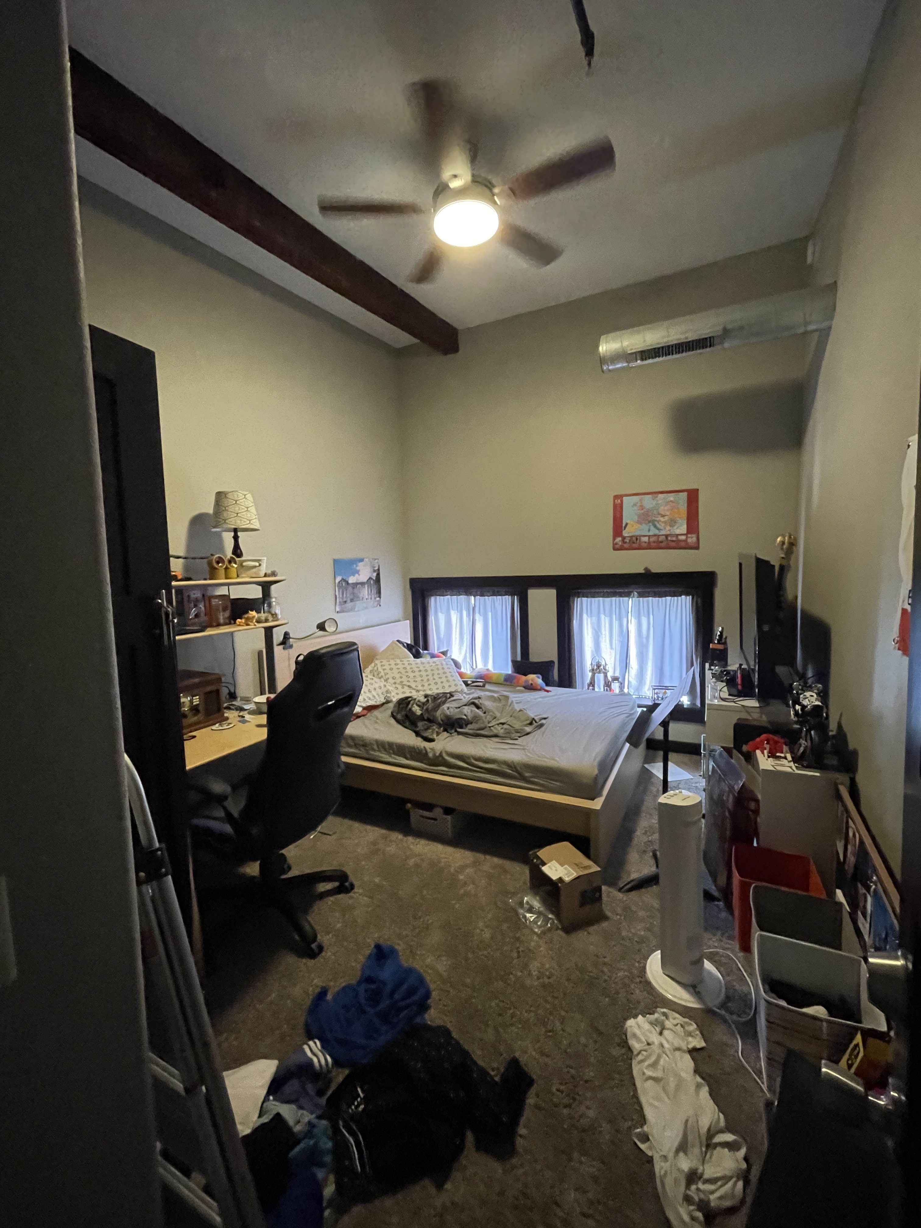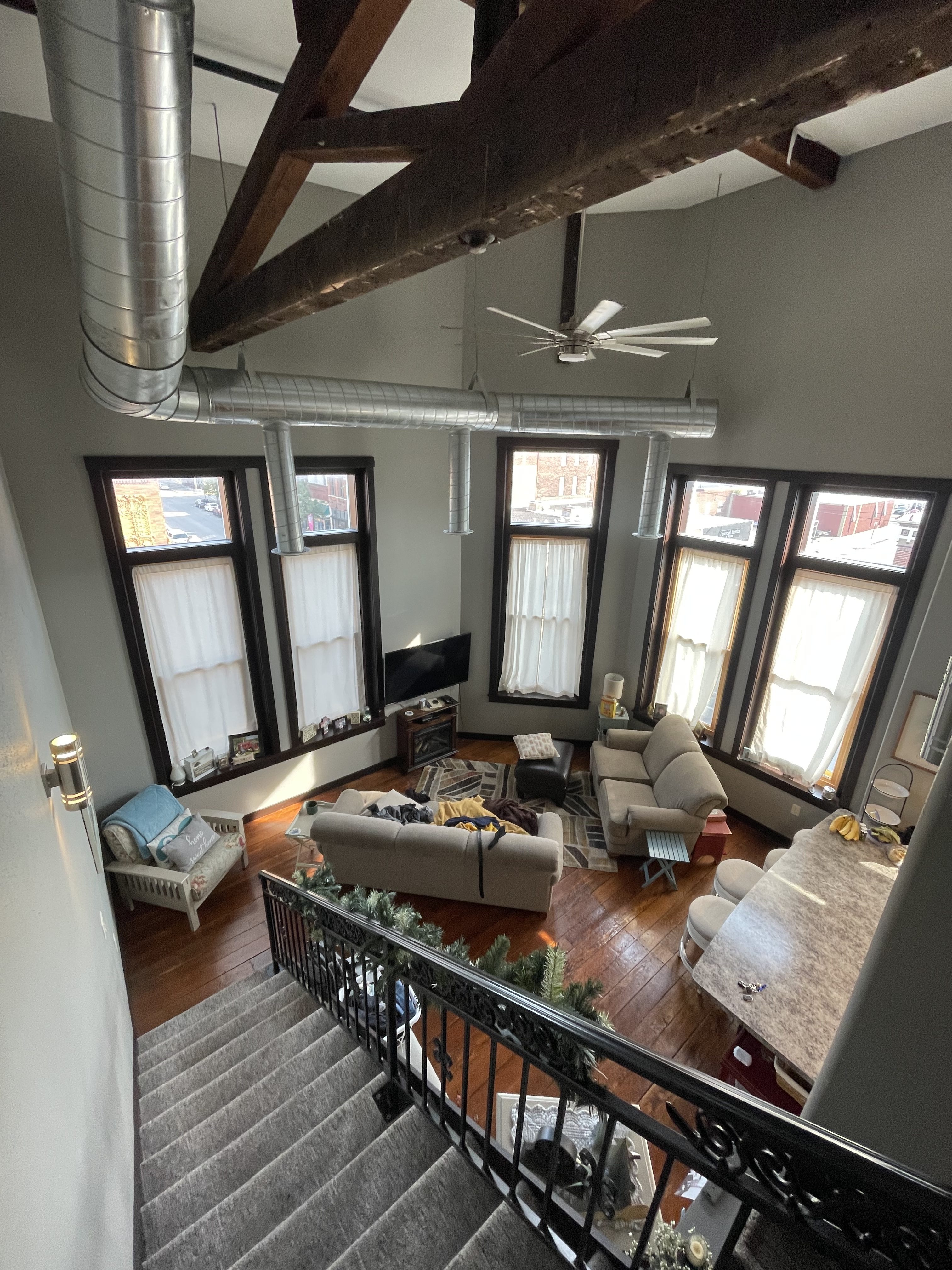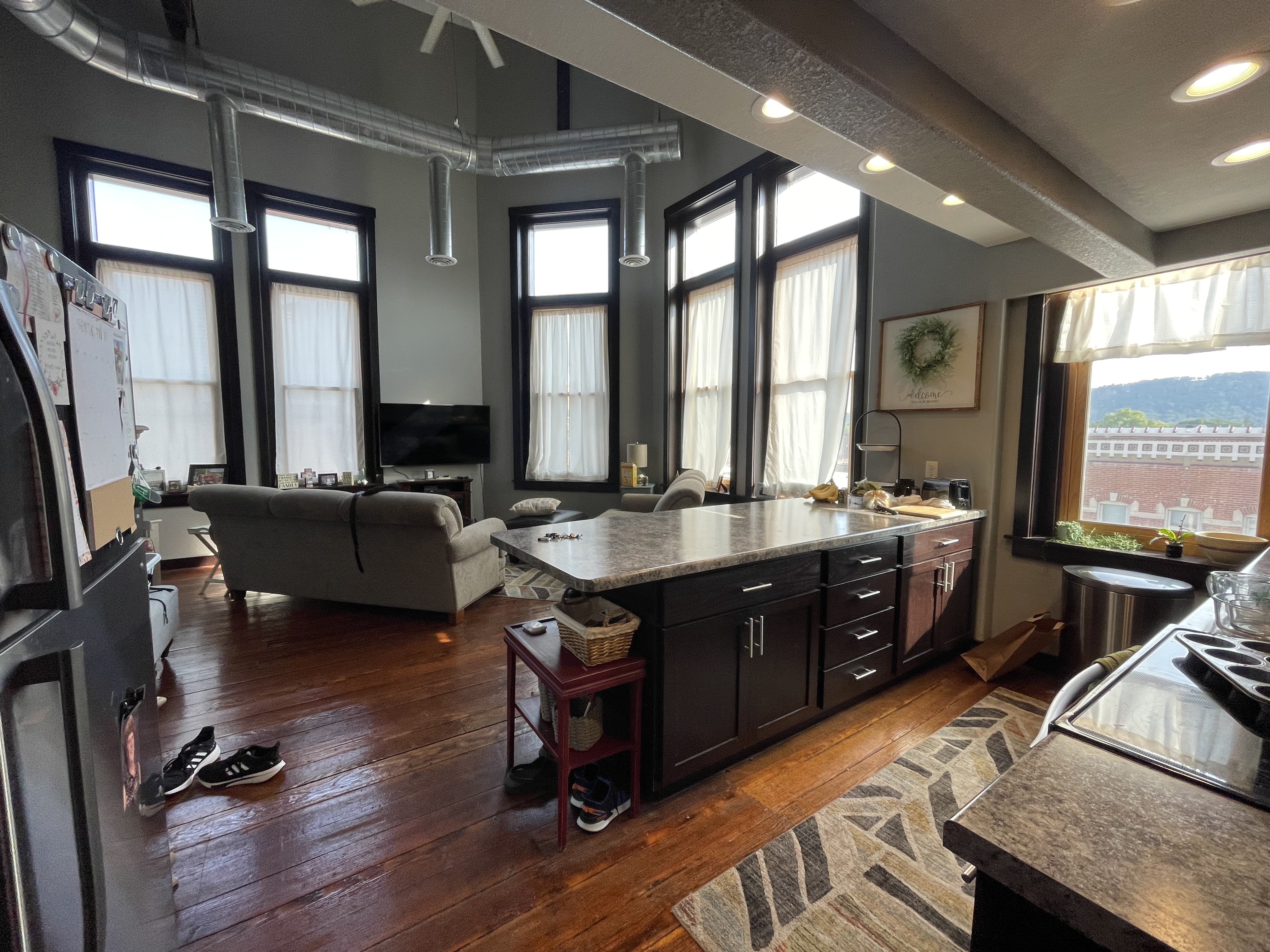 3 bedroom / 1 bathroom custom unit with amazing views.  Restored hardwoods.  Tiled bathroom.  20 foot lofted living room with exposed truss.  Central air conditioning.  Dishwasher.  Exposed ductwork.  Under-mount sink with eat in peninsula.  8 foot windows throughout.  Owner pays water, sewer, and garbage.  Tenants pay gas and electric.